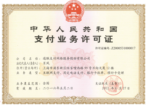 通联支付第一批获取了央行发放的“支付业务许可证”,能够确保企业开展业务的合规性。