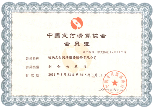 2011年5月6日,中国支付清算协会第一次会员代表大会审议通过:通联支付当选为非金融支付服务机构中的唯一一家副会长单位。其它副会长单位分别为央行、大型商业银行与央行特许清算机构。